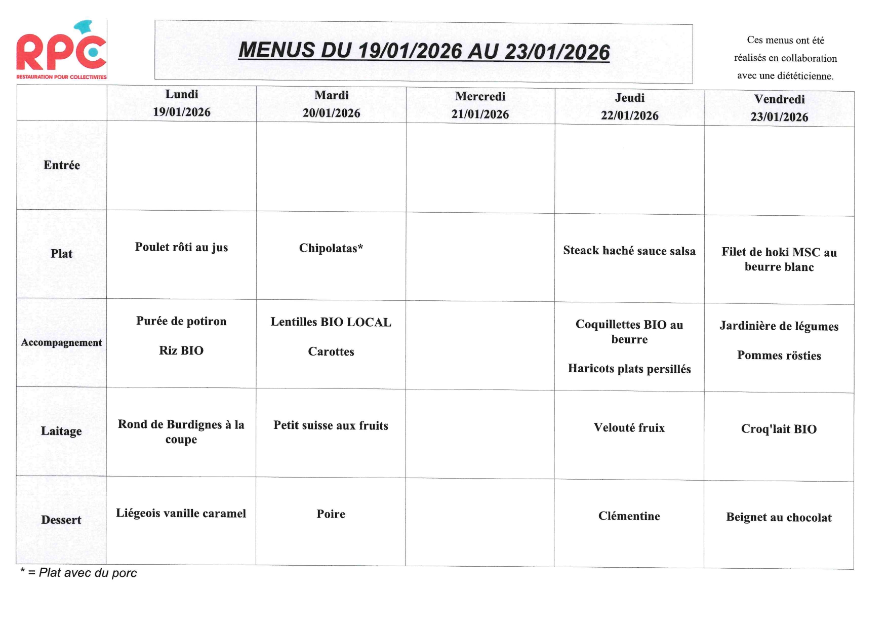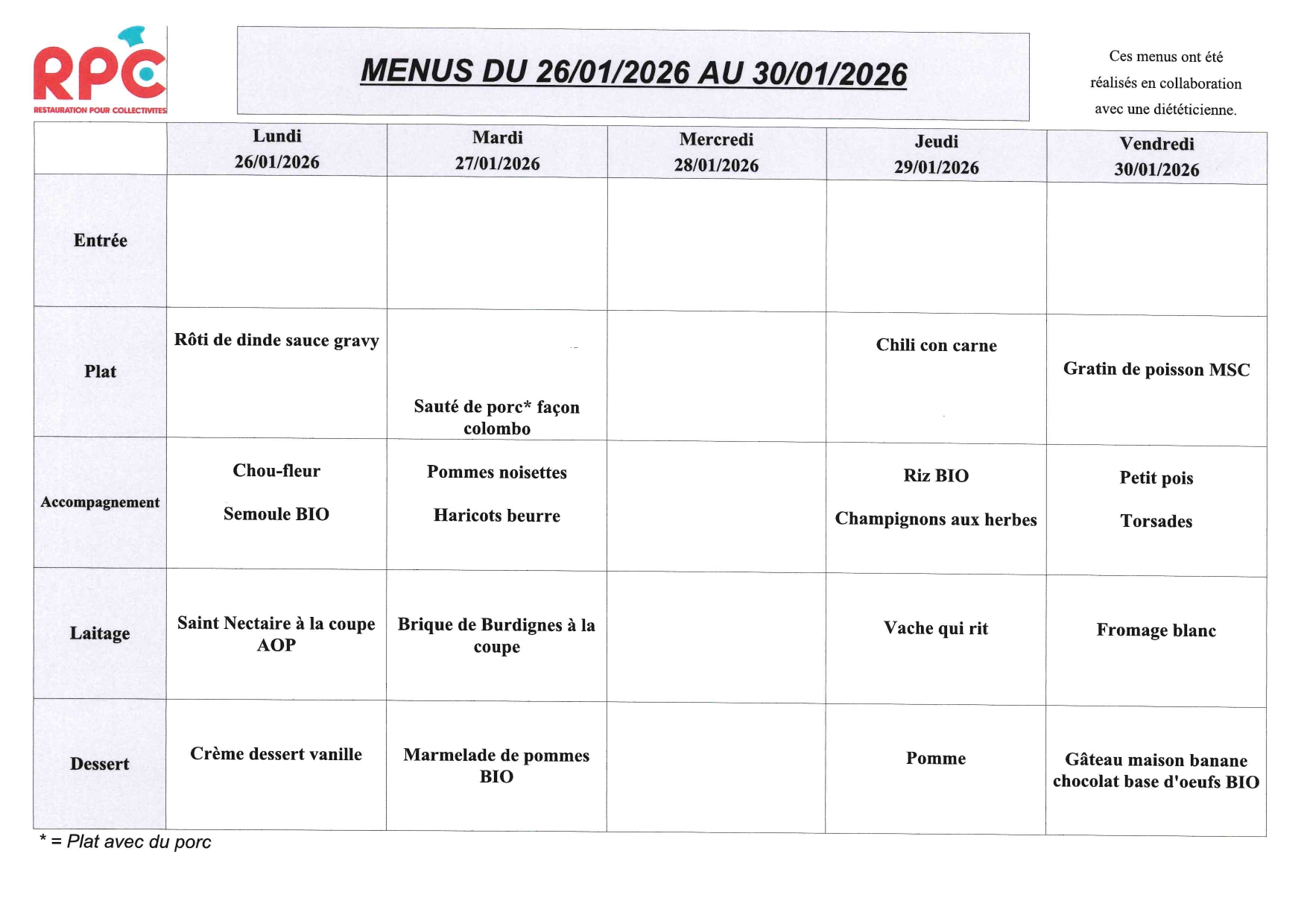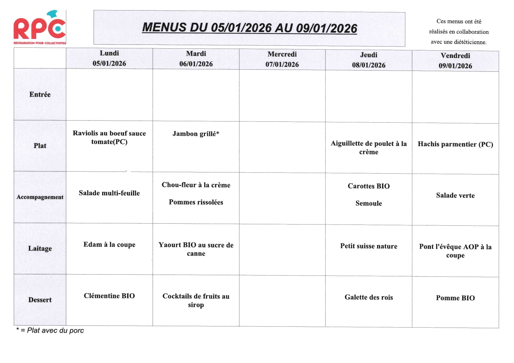 Le restaurant scolaire accueille vos enfants les lundis, mardis, jeudis et vendredis. Les repas sont élaborés à partir de produits frais par le prestataire RPC. - Côté prix